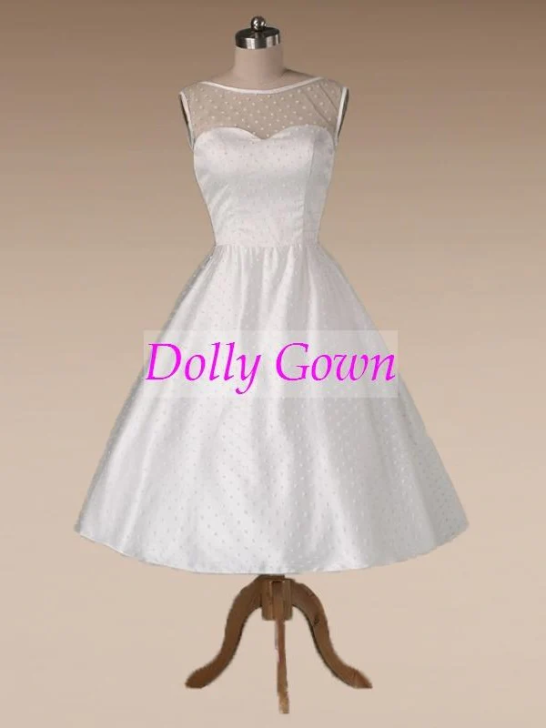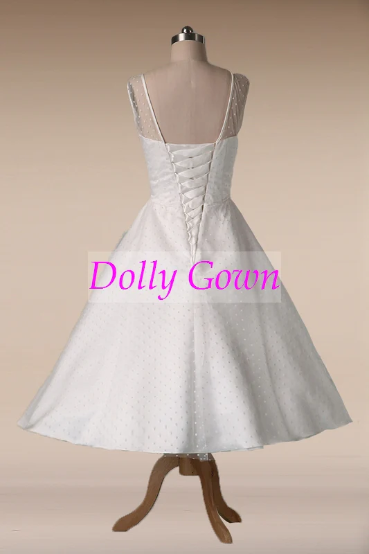 Illusion Neck Swiss Dot Tea Lång Bröllopsklänning (Stil#DO021)
