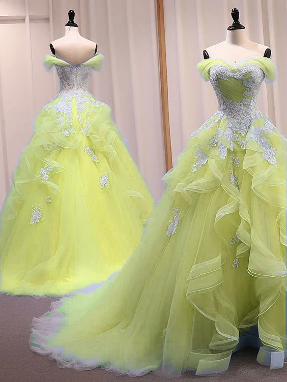This beautiful A line prom dress features a sweetheart neck and off-shoulder design, perfect for making a stunning entrance. The long, flowing tulle lace adds a touch of elegance, while the blue color gives it a sophisticated look. The dress is ideal for formal events, such as proms or weddings, and is sure to make you feel like a princess. With its comfortable fit and beautiful design, this dress is a must-have for any formal occasion.
