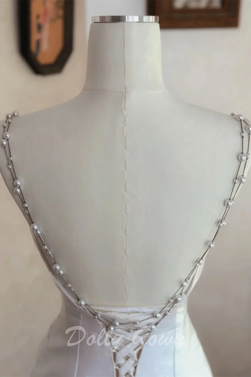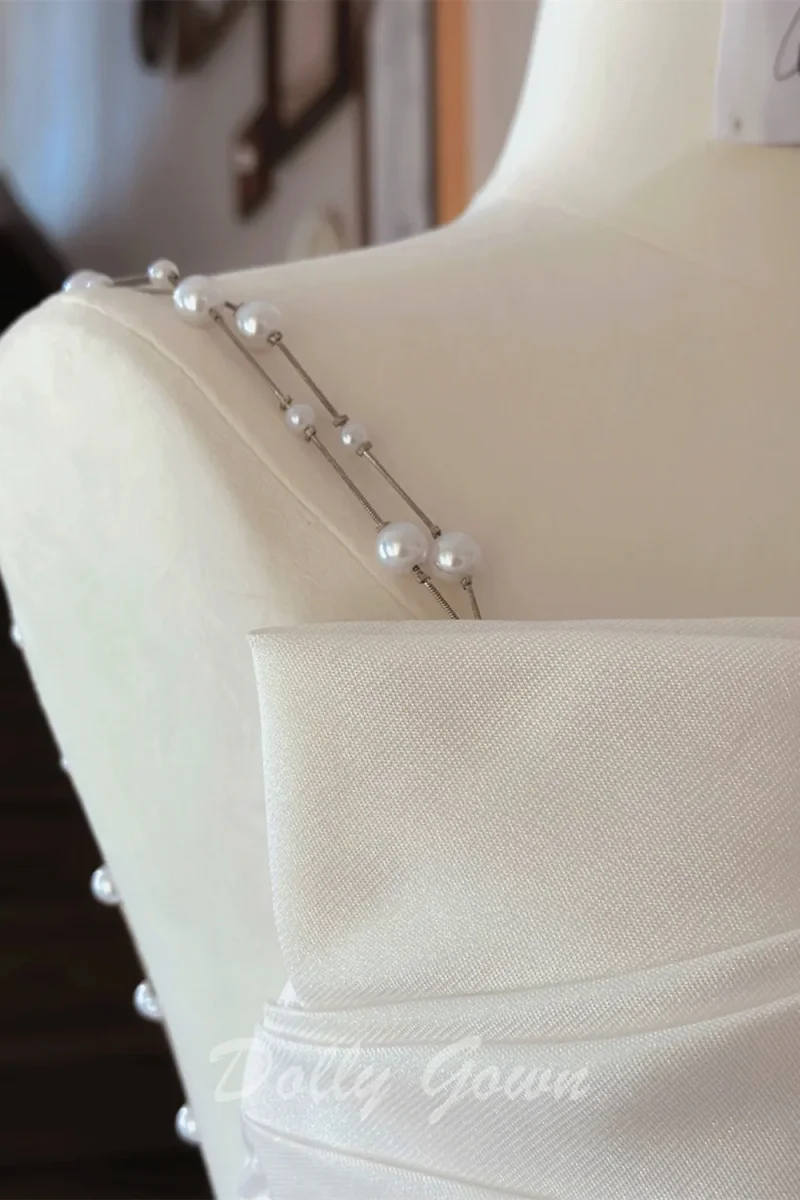 Unique Asymmetrical Satin Mermaid Wedding Dress Features Beads Spaghetti Straps