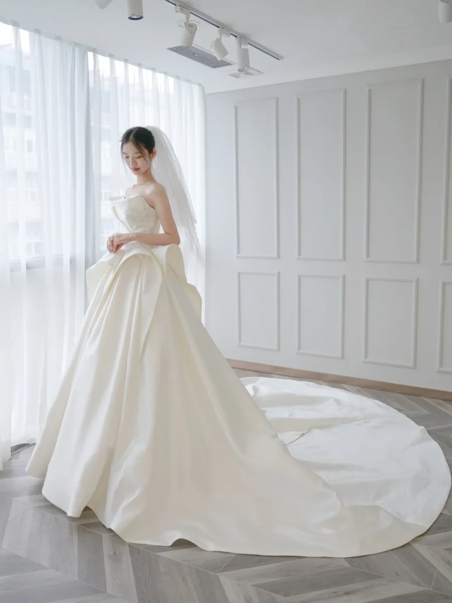 Prinsessan asymmetrisk sidenbollklänning bröllopsklänning