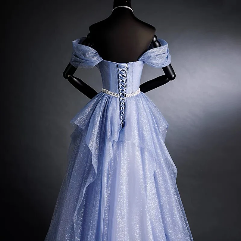 Lavendel volang lång A-linje balklänning