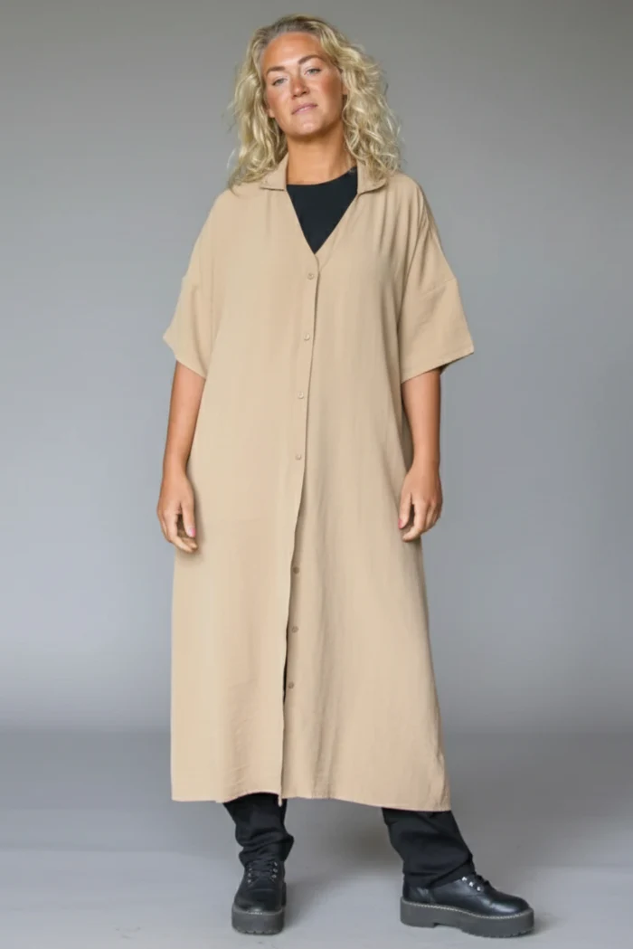 Sahara Long Shirt är en fantastisk produkt som du både kan använda som klänning eller längre skjorta – öppen eller stängd. Lätt, skönt tyg och fickor. En prefekt skjortklänning helt enkelt tillverkad av 100% återvunnen polyester.