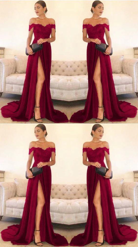 Burgundy spets balklänning med slits lång formell klänning