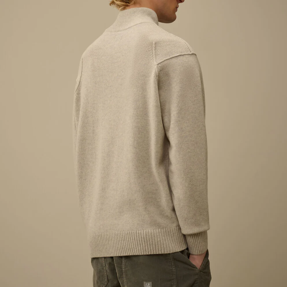C.P. Company Knitted Wool Half Zip Off White Melange