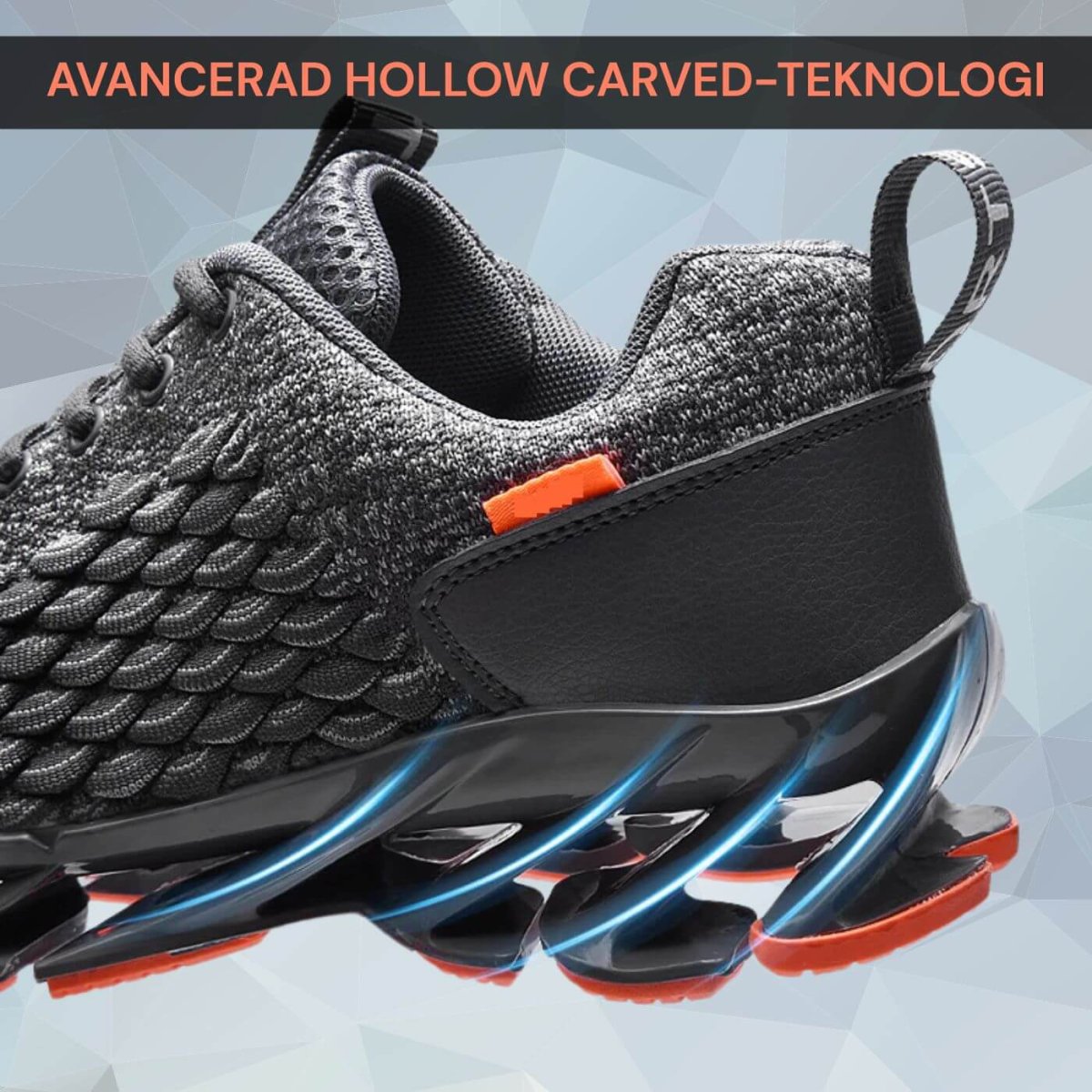 Caspar™-skorna är utrustade med Hollow Carved-teknologi som absorberar stötar och ger en lätt, fjädrande känsla i varje steg. Perfekta för långa dagar på fötterna – de minskar tryck, smärta och trötthet så att du orkar mer utan att det känns.