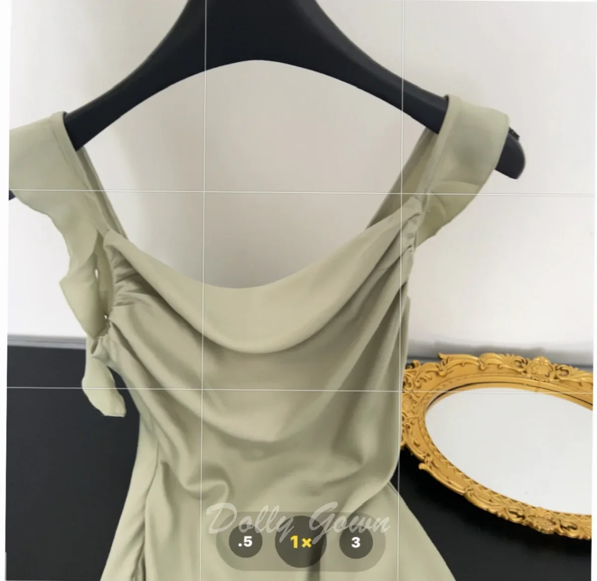 Semi Formal Cowl Neck Long Slip Dress Bridesmaid Dresses Features Ruffled Shoulder Straps