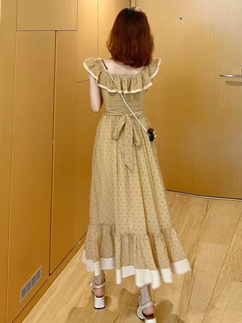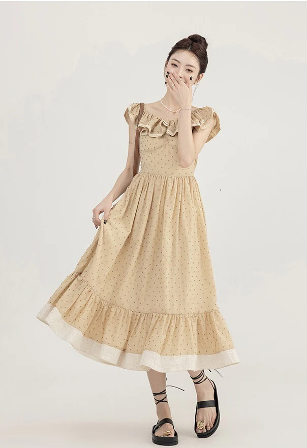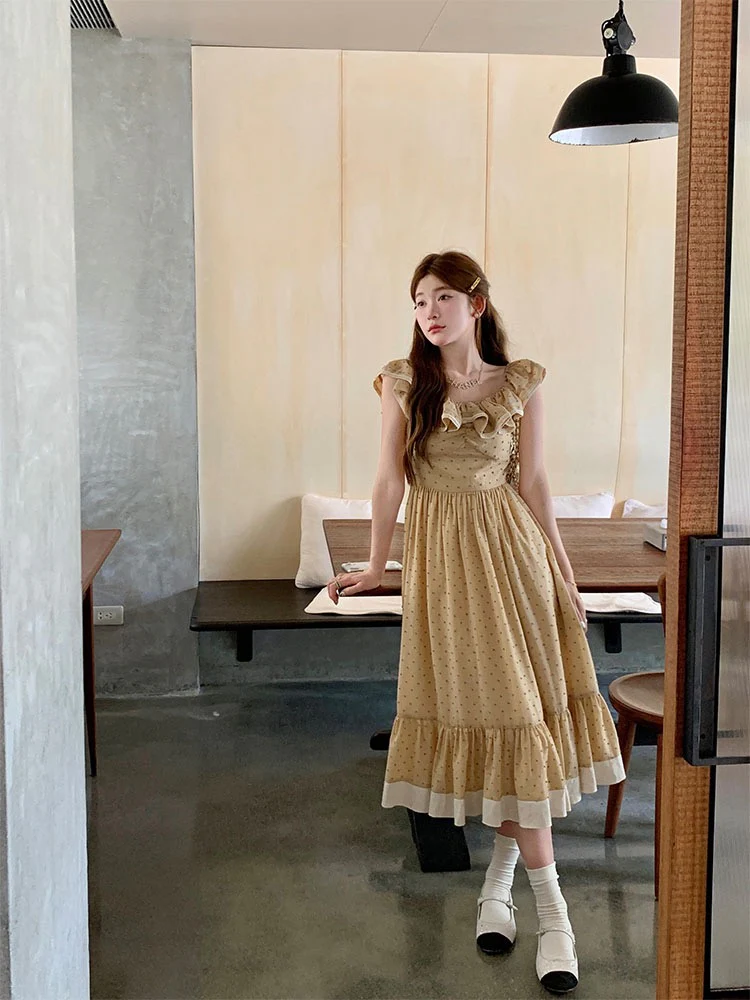 Champagne Polka Dot Rund Hals Vintage Vintage Swing Dress