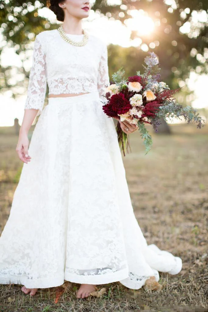 Rustik Modest Spets Tvådelad Separat Bröllopsklänning