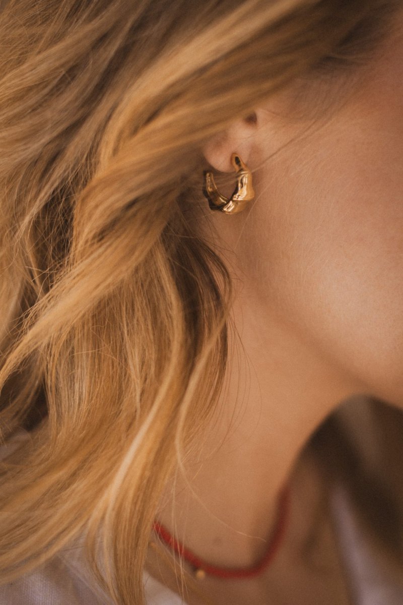 Förgyllda creoler inspirerat av bambuns naturliga skönhet och styrka.