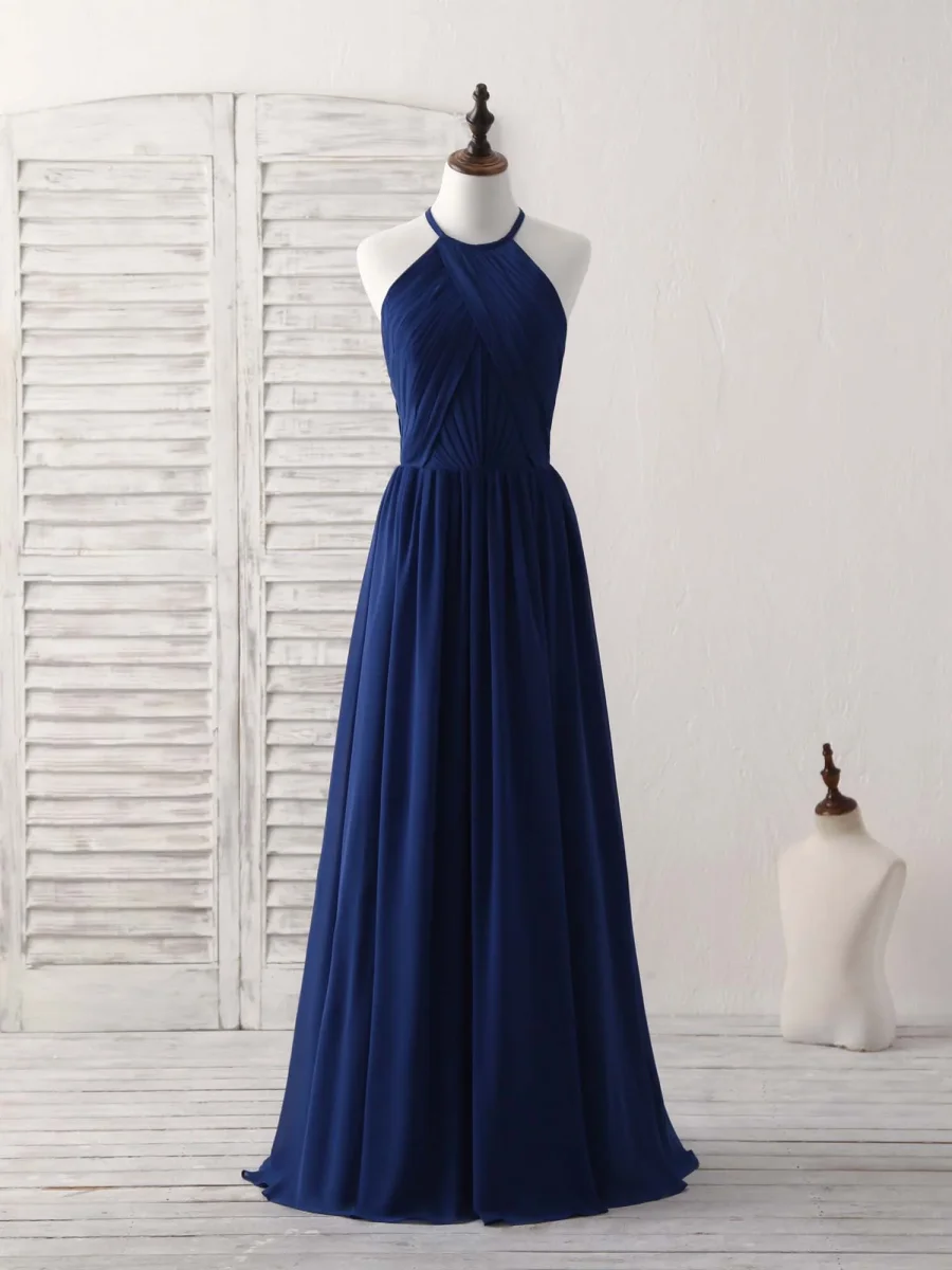Twirl into any special occasion with this enchanting dark blue chiffon gown. Its simple, flowing design ensures you’ll feel comfortable and look stunning, perfect for proms or as a charming bridesmaid dress. The graceful silhouette flatters every figure, making you the belle of the ball. This dress is a dream for dancing the night away.