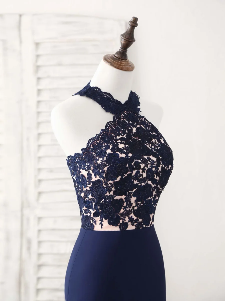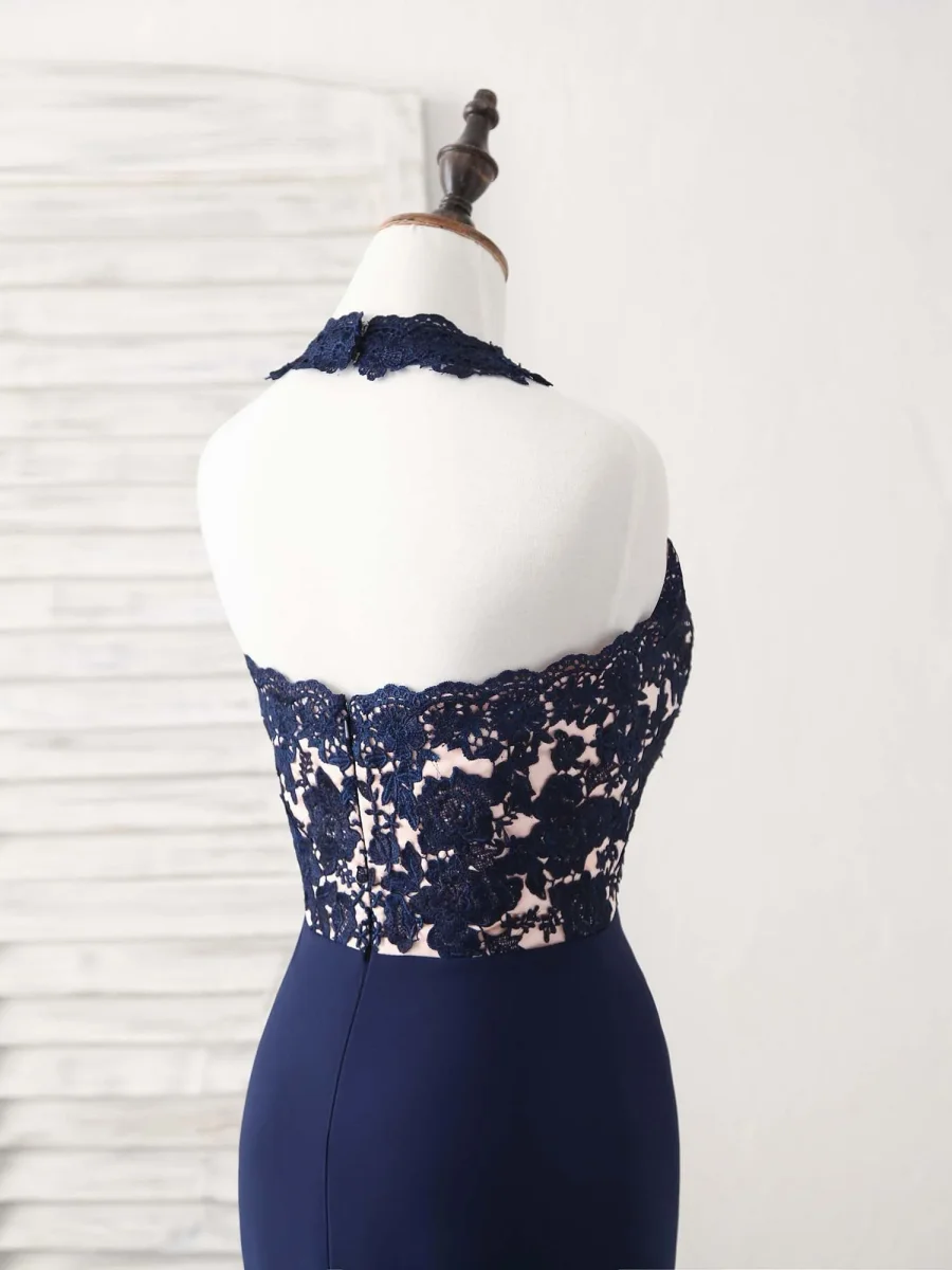 Twirl into any special occasion with this stunning dark blue lace mermaid gown. Its exquisite design hugs your curves, creating a breathtaking silhouette that’s sure to turn heads. The delicate lace detailing adds a touch of timeless elegance, perfect for proms or as a show-stopping bridesmaid dress. Feel absolutely enchanting and make unforgettable memories in this gorgeous garment.