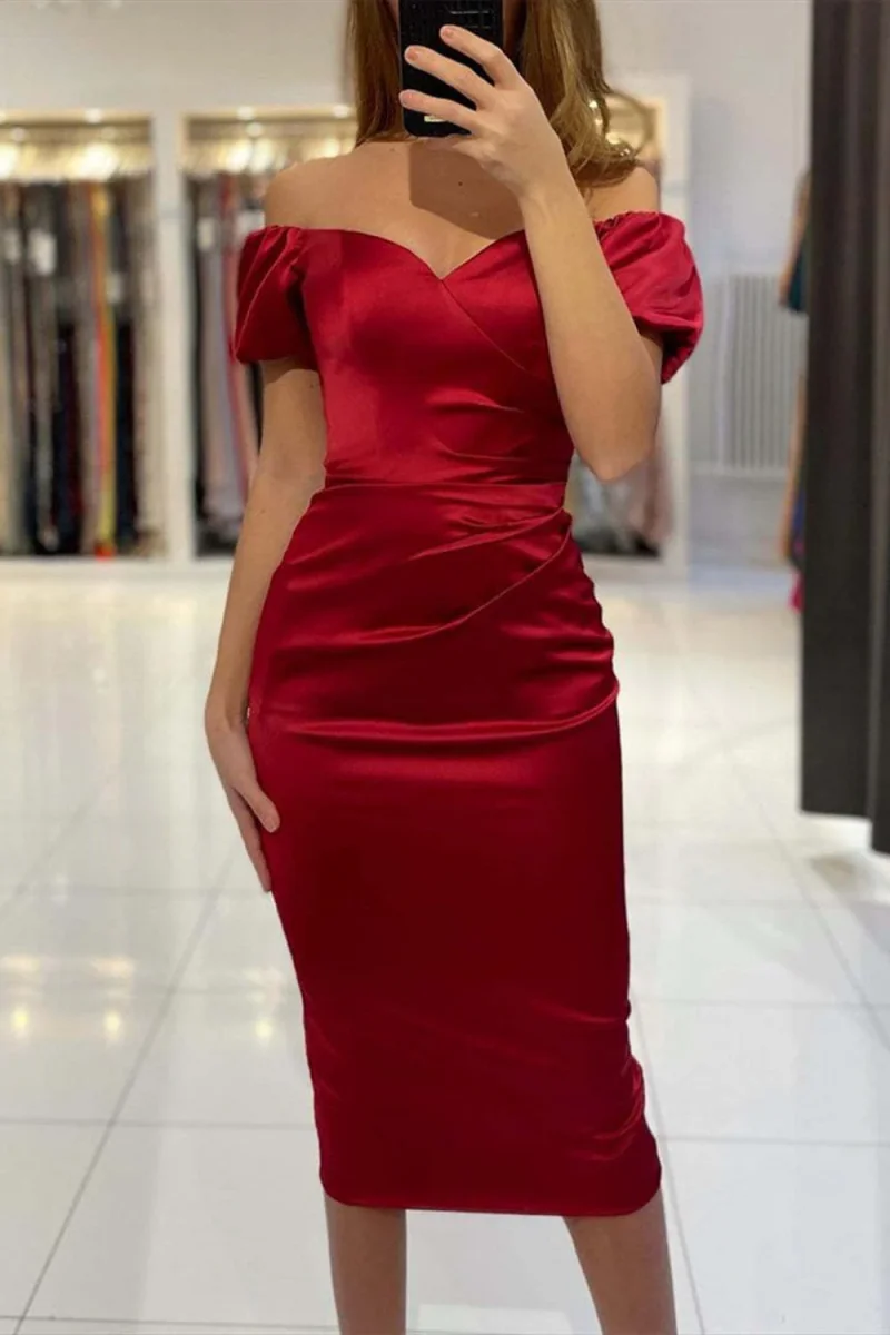 Step out in style with this stunning off the shoulder tea length dress, crafted from luxurious satin. Its elegant design and rich burgundy hue make it perfect for any formal event, ensuring you’ll be the belle of the ball. The figure flattering silhouette and comfortable fit will have you dancing the night away. Embrace sophisticated charm and make a memorable entrance wherever you go!