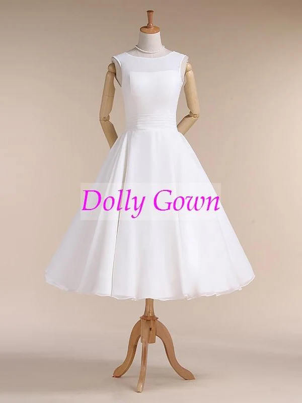 Full Circle Illusion Neck 50-tal stil Chiffong Retro stil Midi längd Bröllopsklänning