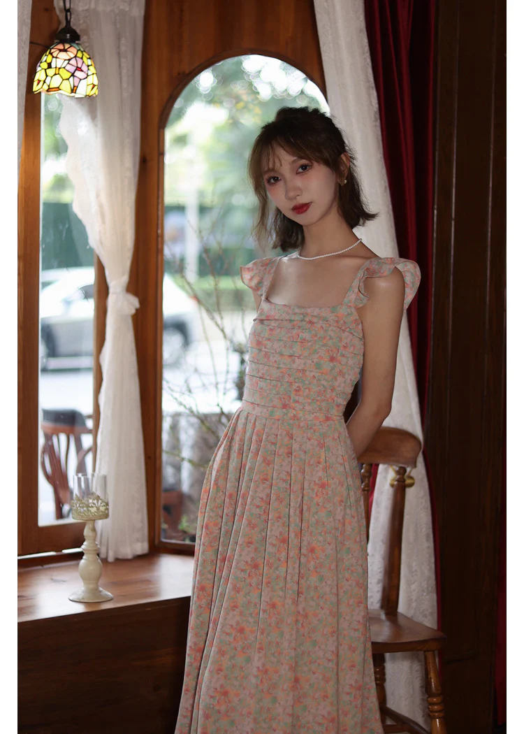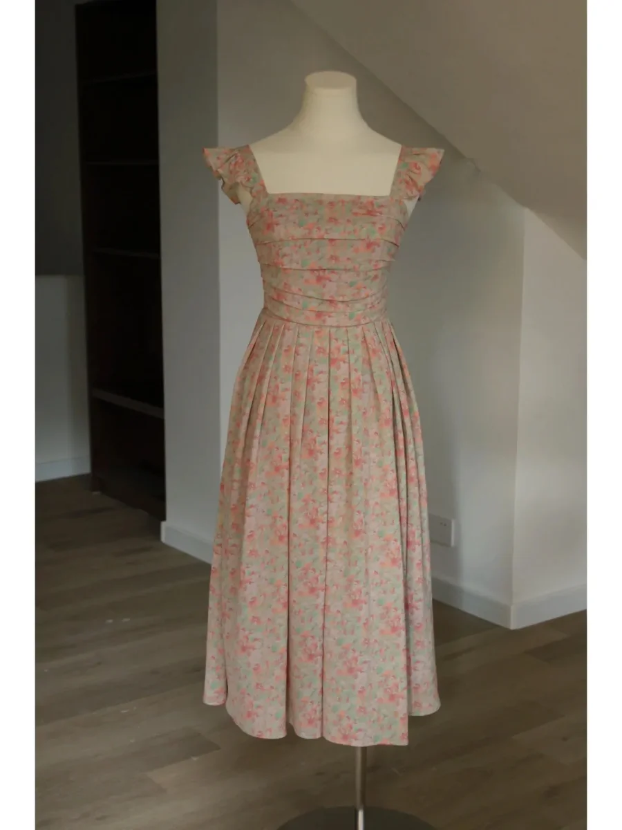 Kepsärmar Blommig Box Veck 50-talsstil Swing Dress