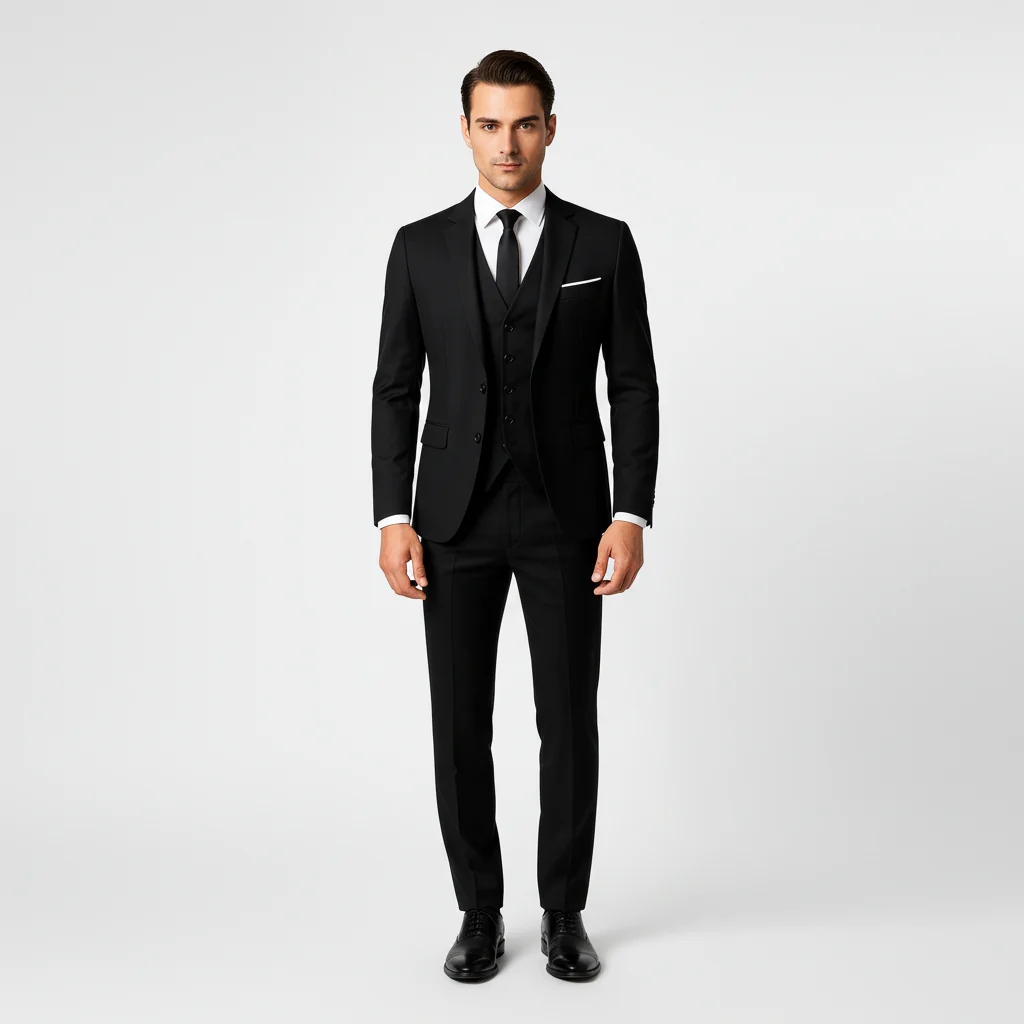 Denna kostym herr tredelad med kavaj, väst och byxor passar för möten, ceremonier och olika formella tillfällen. Kostym herr set skapar ett sammanhängande uttryck som fungerar för både arbete och festliga sammankomster. Delarna kan bäras tillsammans eller kombineras med andra plagg i garderoben.