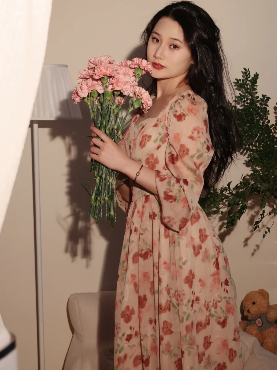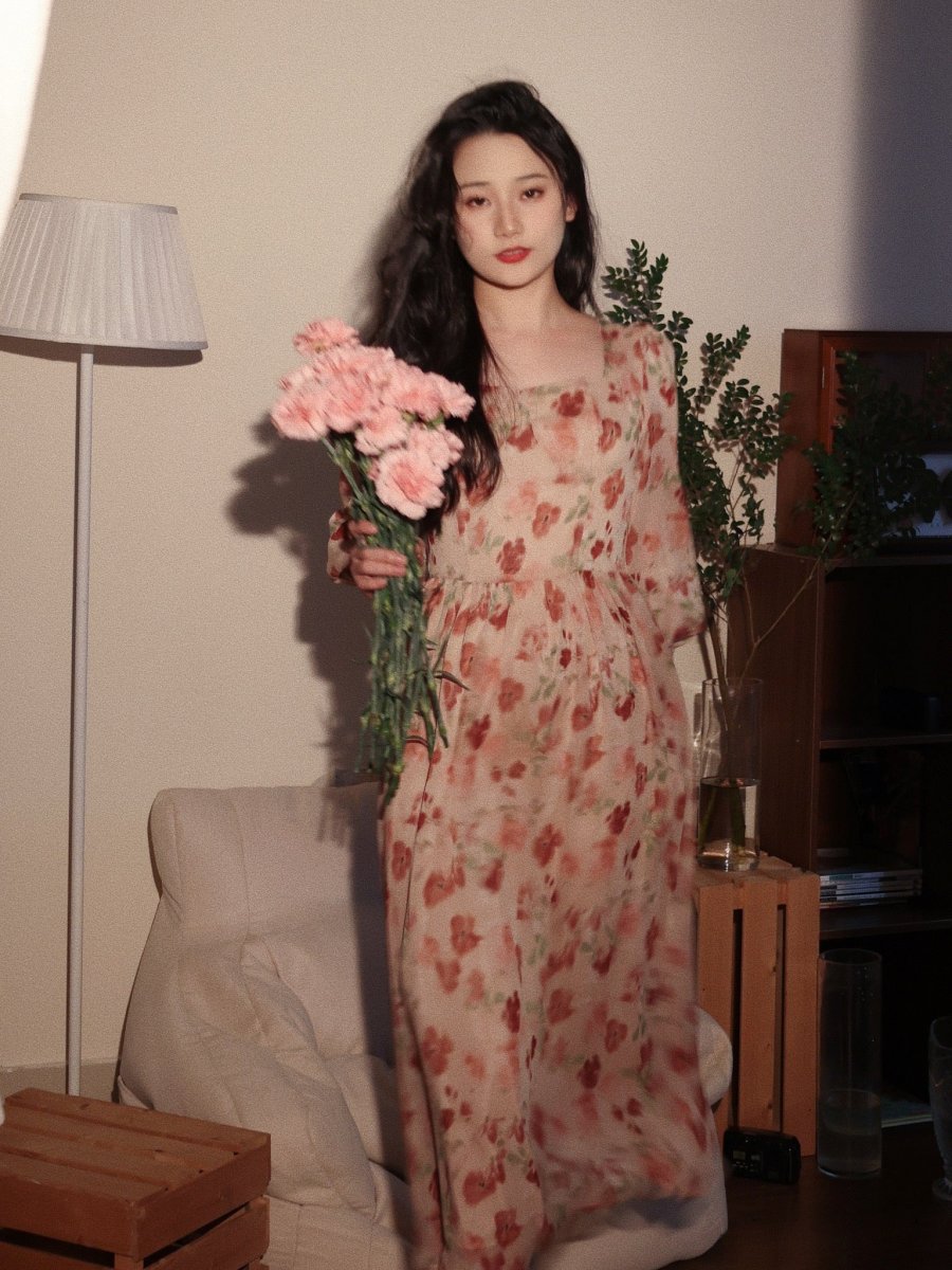 Material: Chiffong Mönster: Foral Sleeve Style: Långa ärmar