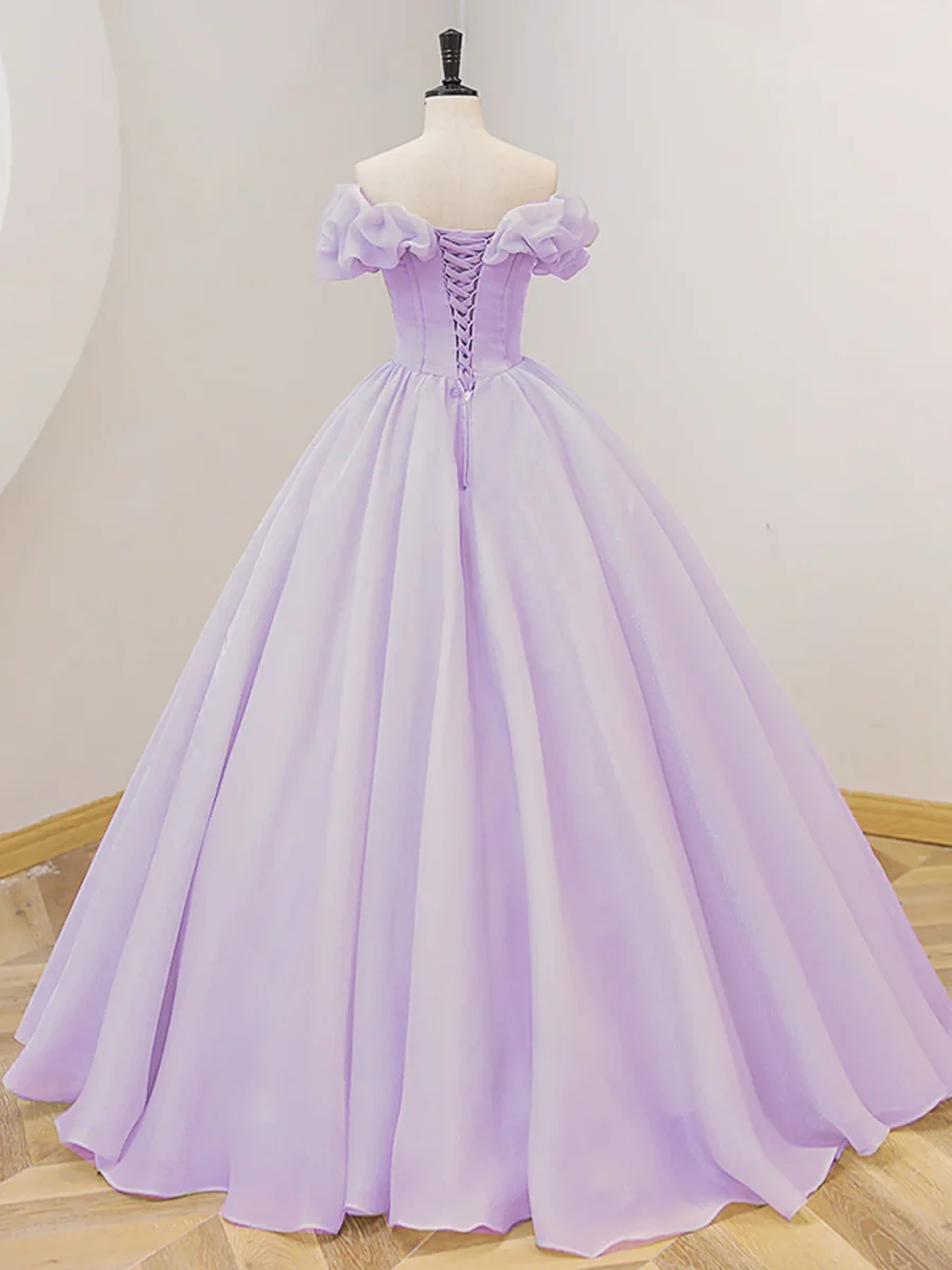 Lilac A-Line Off Shoulder Långa Balklänningar, Lila Sweet 16 Dress