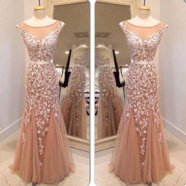 Denna höghalsade sjöjungfru Champagne Spets Balklänningar har kontrast spetsdetaljer ger en feminin och intrikat touch till klänningen, vilket gör den till ett perfekt val för en minnesvärd balkväll.