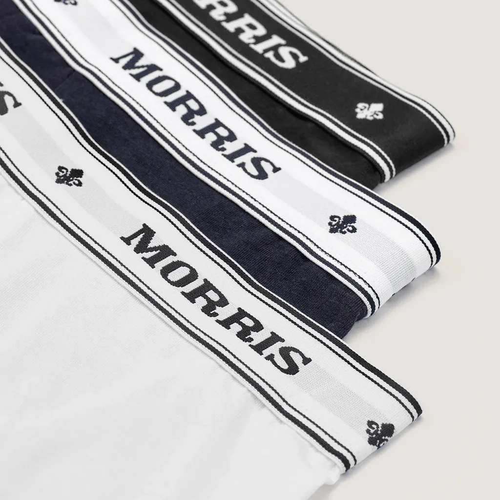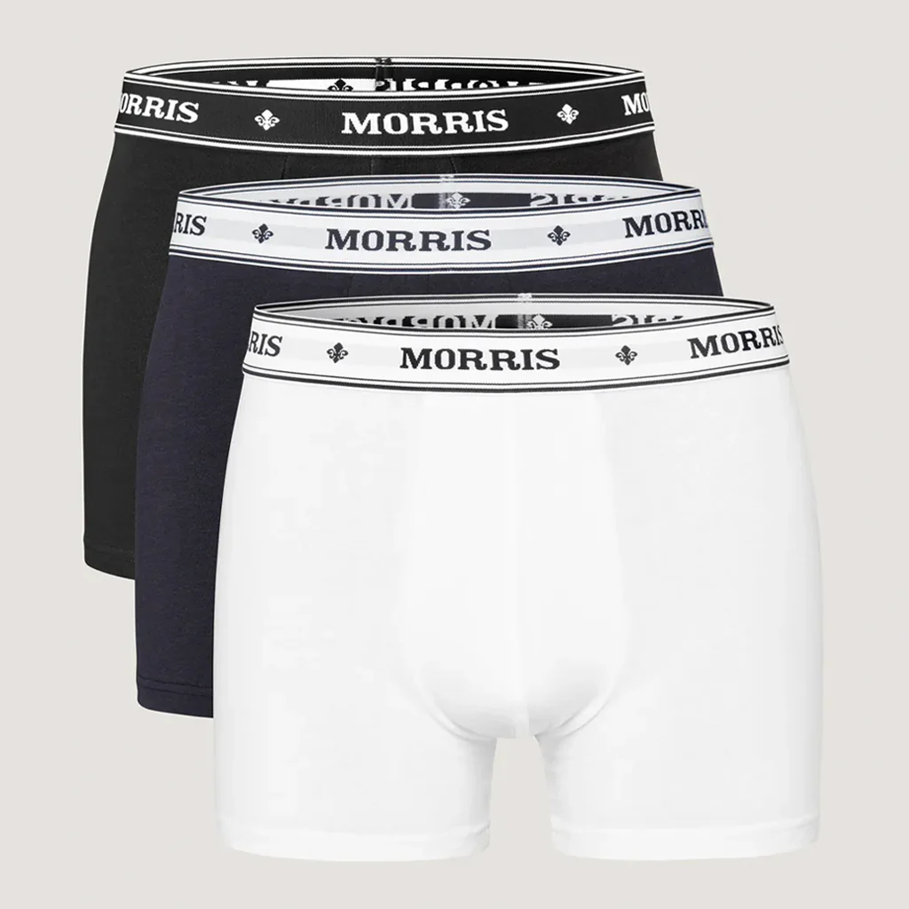 Varje mans garderob kräver kvalitetsunderkläder. Detta trepack med boxerkalsonger i klassiska färger som vit, blå och svart, tillverkade av ett mjukt bomullsjersey med god stretch, garanterar överlägsen komfort. Elastiskt midjeband med Morris-logotypen.