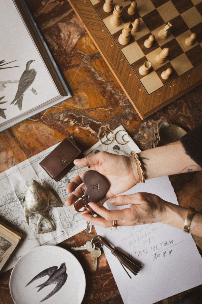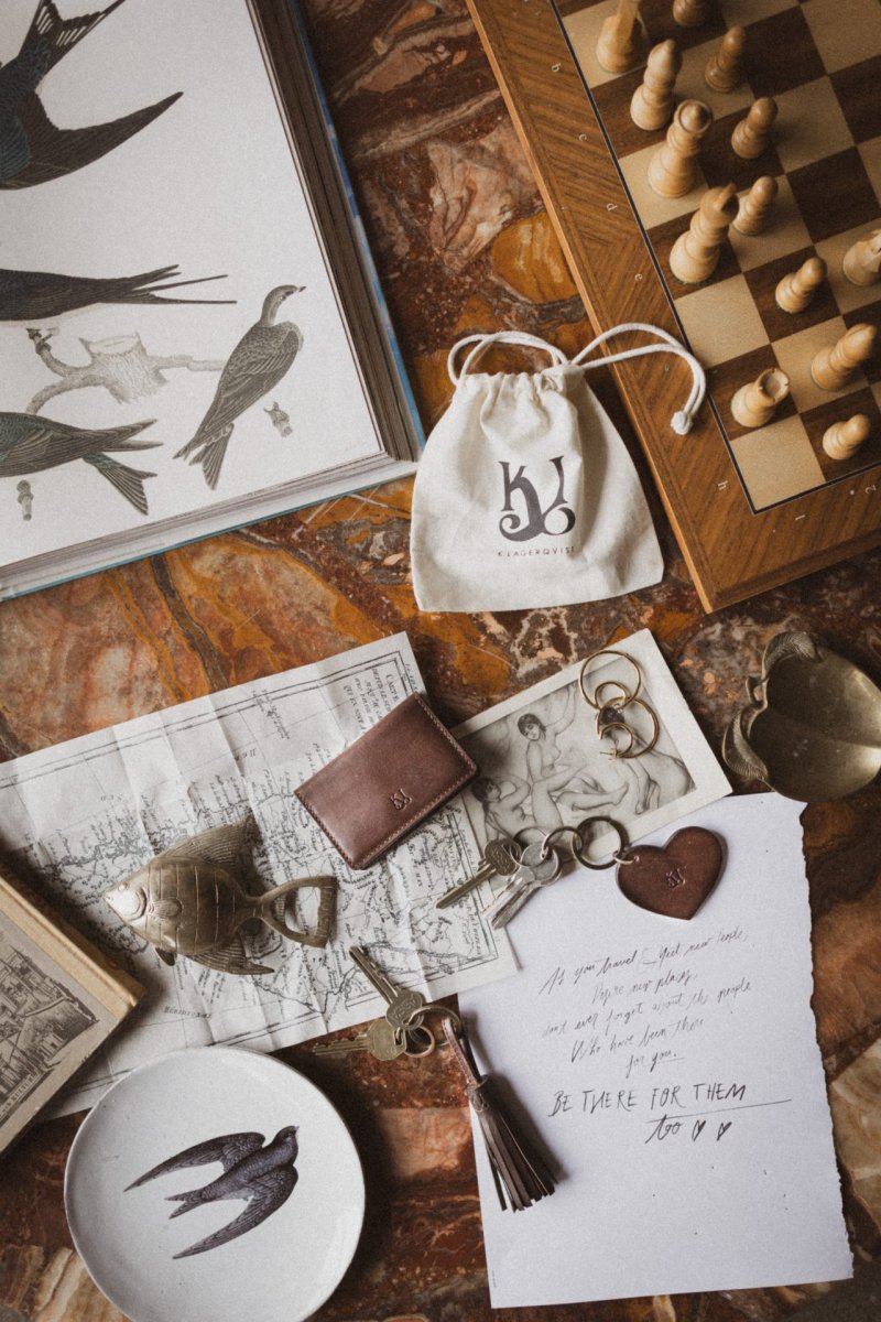 Vacker nyckelring i halländskt läder och ring för nycklar i mässing.