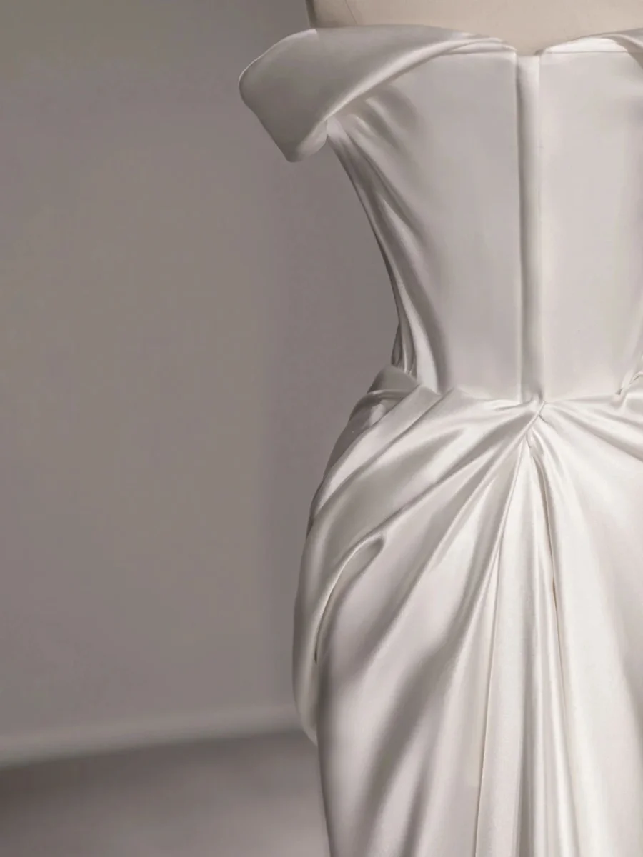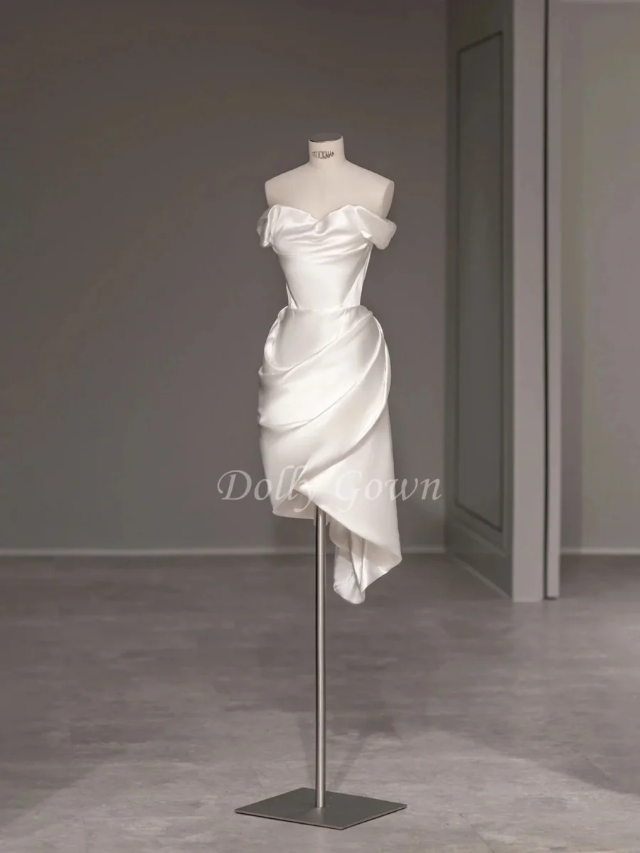 Asymmetrisk Off the Shoulder 100 Silk Kort Bröllopsklänning