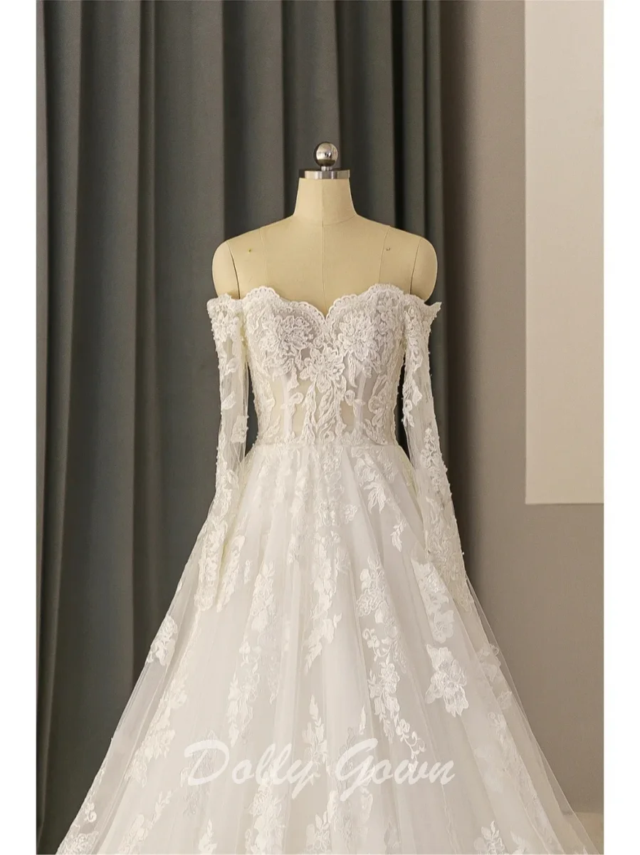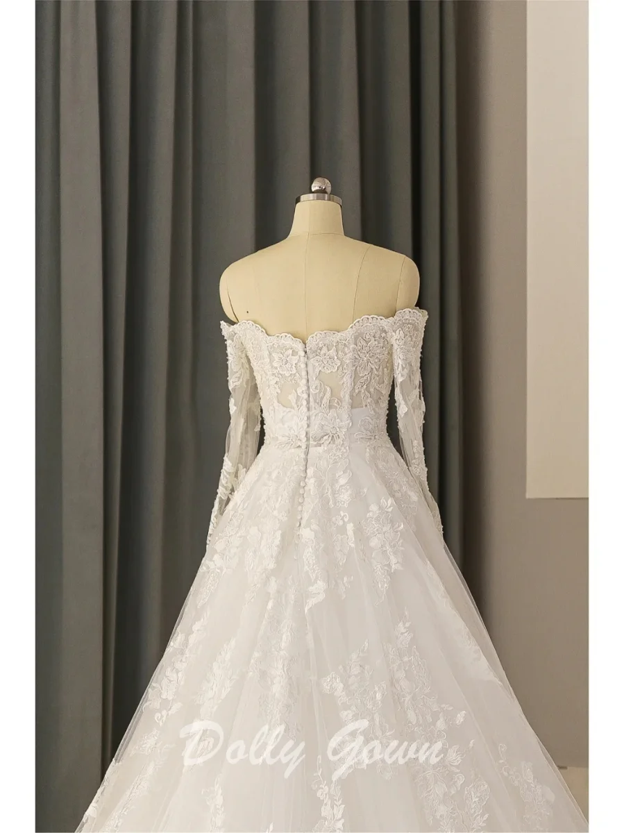 Cathedral Train Long Sleeve Lace Sheer Wedding Dress