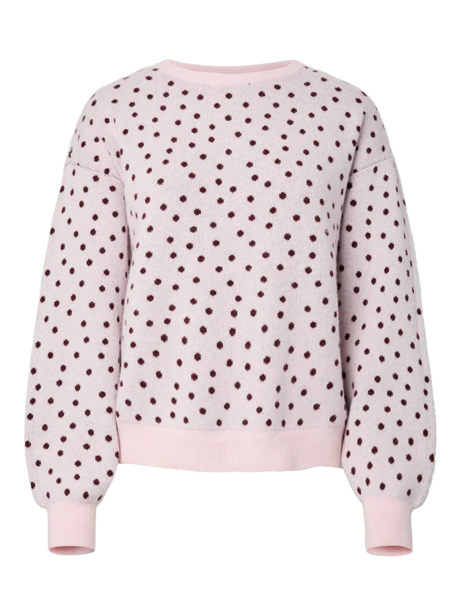 PCNANCY LS O-NECK DOT KNIT BC