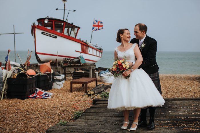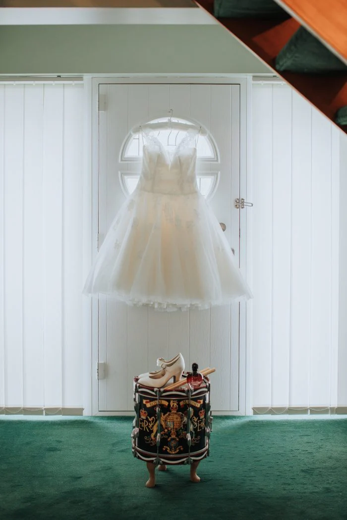 Rundhalsad spetsapplikationer Tyll Te Längd Bröllopsklänning