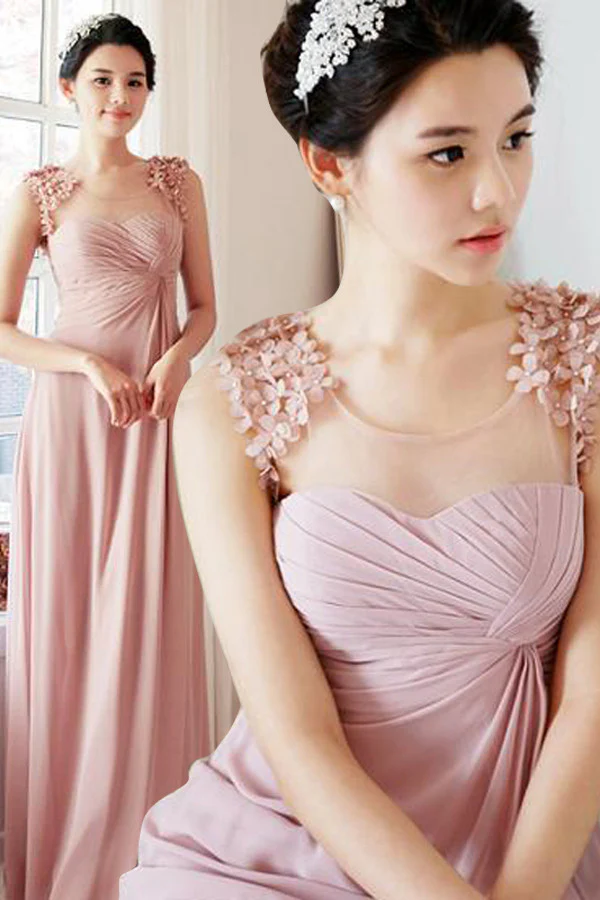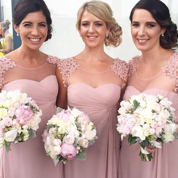 Kepsärm Blush Rosa Ruched Chiffong Maxi Brudtärnklänningar