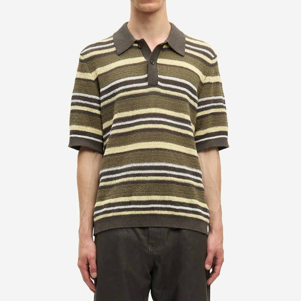 Samarco Polo SS är skapad för den moderna mannen som vill ha något mer än en vanlig polo. Det diskreta rändmönstret i jordiga olivtoner ger plagget ett visuellt intressant uttryck som ändå är lätt att kombinera. Bär den instoppad med ett par chinos för ett polerat intryck, eller löst med jeans för en mer avslappnad sommarstil.