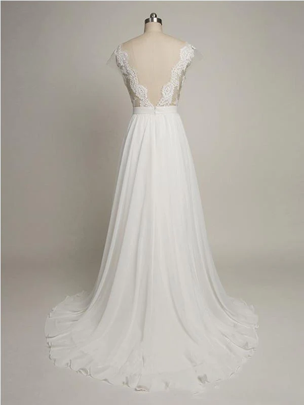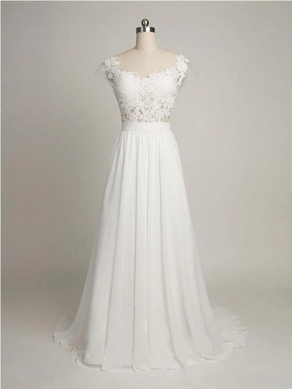 Boho Lace Top Cap ärm Flowey sommar bröllopsklänning