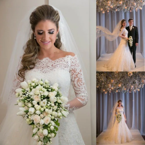 Off the Shoulder Långärmad spetsbrudklänning