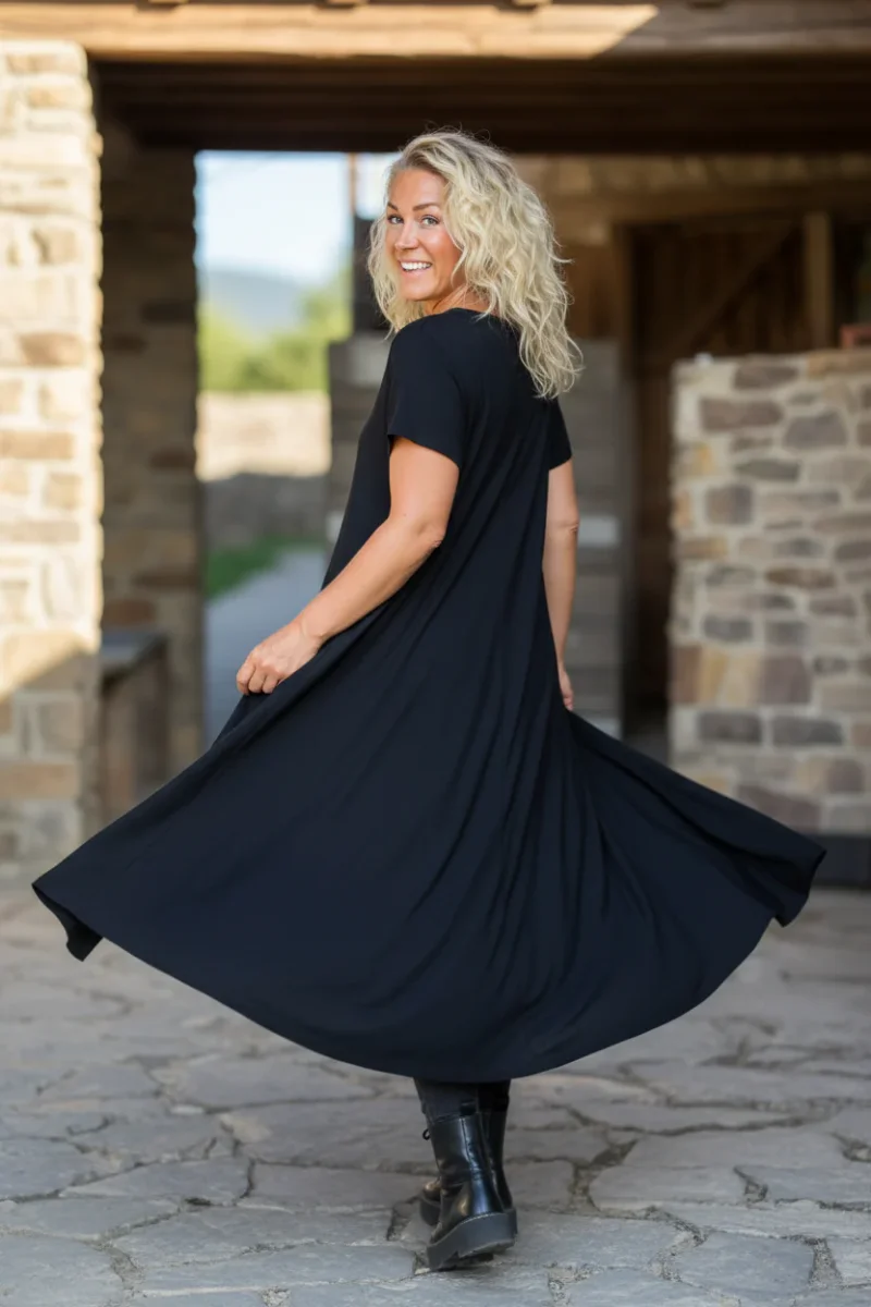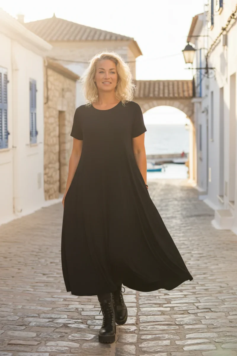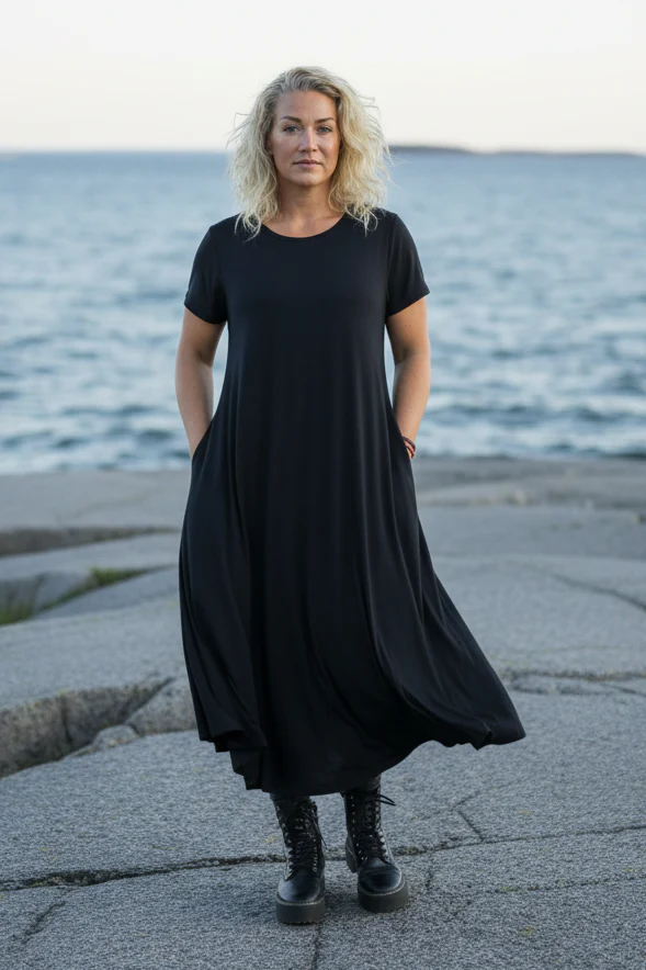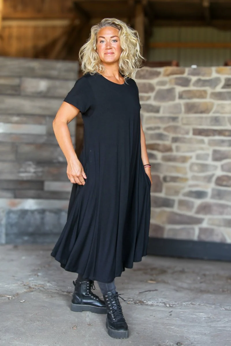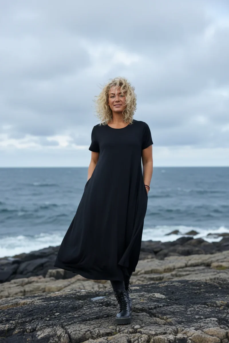Ballerina Dress är en av våra mest populära klänningar. Med otrolig stretch passar klänningen de flesta kroppstyper och är mycket bekväm att bära. Tyget har en härlig tyngd vilket gör att klänningen faller vackert. Med fickor och en perfekt längd är detta den perfekta klänningen för många olika tillfällen.